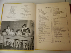 I am so drawn to this weird old book, but I cannot for the life of me figure out what the hell they were thinking. Is it for teachers? Parents? Preschoolers? Big kids? How in heaven's name were you supposed to use it? As an curriculum guidebook of sorts or were the kids just supposed to dig in by themselves and browse? So so weird. More than anything it reminds me of some crazy teacher's three-ring binder of Everything I Ever Thought Might Be Fun to Teach. Anyway, here are some photos of the more notable color illustrations in the books, although the majority of the pages are black-and-white:
